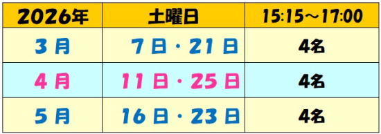 ①は初回のみ当日受付も可。