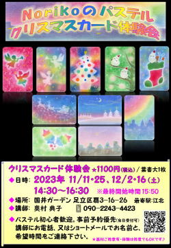 ◆パステルアート無料体験会 開催 2020年12/19(土) 14:30~18:00 国井ガーデン クリスマスや来年の干支を オリジナルの型を使って パステルアート体験 |